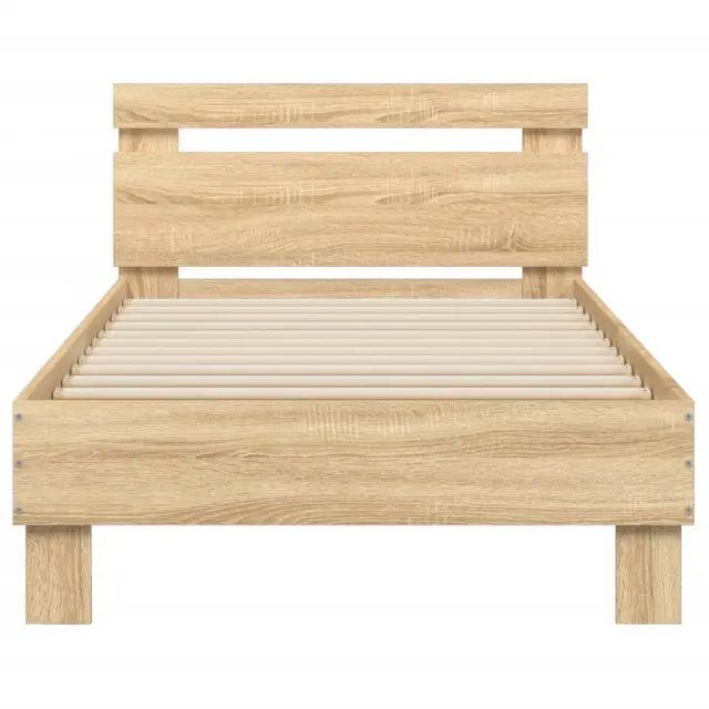 vidaXL Posteljni okvir z vzglavjem in LED sonoma hrast 90x200 cm