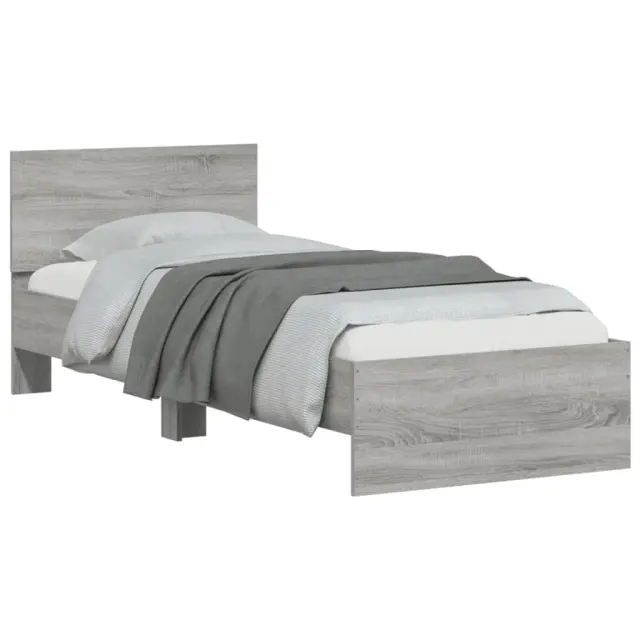 vidaXL Posteljni okvir z vzglavjem in LED siva sonoma 90x190 cm