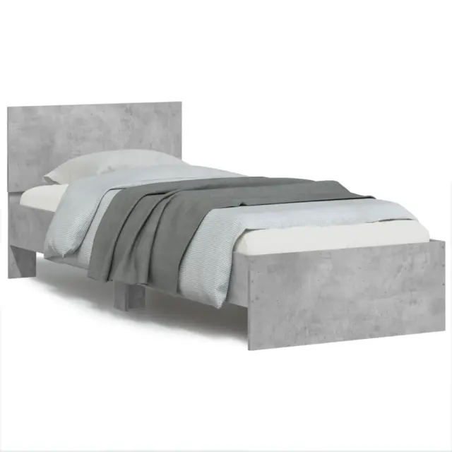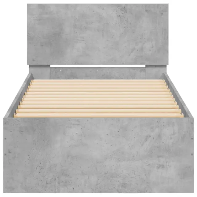 vidaXL Posteljni okvir z vzglavjem in LED betonsko siv 75x190 cm