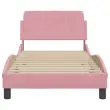 Zagotovite si boljši spanec s tem posteljnim okvirjem z vzglavjem! Je prijeten dodatek za vsako spalnico. Mehak žamet: Žamet je mehka in udobna tkanina, ki je prijetna do kože.Podporne noge: Postelja je podprta s čvrstimi nogami, ki zagotavljajo njeno stabilnost, varnost in trdnost.Letvice iz vezanega lesa: Letvice iz vezanega lesa omogočajo dobro porazdelitev teže in zagotavljajo, da vzmetnica ostane na mestu ob vsakem zasuku in obračanju med spanjem.Udobna opora: To vzglavje za posteljo vam zagotavlja odlično oporo za hrbet, ko sedite na postelji in berete ali gledate filme.Valovita stranica: Valoviti videz posteljnega okvirja je eleganten in prefinjen. Dekorju v vašem domu dodaja sodoben in eleganten pridih ter tako postane osrednja točka spalnice. Dobro je vedeti:Vzmetnica ni priložena tej postelji. Ponujamo različno izbiro ležišč. V naši trgovini si lahko ogledate ustrezne vzmetnice.Barva: RozaMaterial: Žamet (100 % poliester), kovina, vezan les, inženirski lesCelotne dimenzije: 208 x 95 x 74,5 cm (D x Š x V)Velikost primerne vzmetnice: 90 x 190 cm (Š x D) (vzmetnica ni priložena)Potrebno sestavljanje: Da 373097