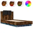 vidaXL Posteljni okvir z vzglavjem in LED dimljeni hrast 90x190 cm
