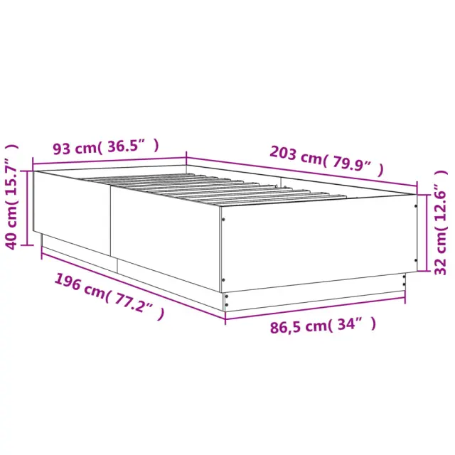 Zagotovite si boljši spanec s tem posteljnim okvirjem z LED lučkami! Je prijeten dodatek za vsako spalnico. Vzdržljiv material: Inženirski les se ponaša z izjemno kakovostjo, gladko površino ter močjo, stabilnostjo in odpornostjo na vlago.RGB LED luči: Posteljni okvir je opremljen z živahnimi RGB LED lučkami. Z različnimi prilagodljivimi meniji lahko brez težav spreminjate barvo luči in celo nastavite njihovo samodejno prilagajanje. Te LED lučke poudarjajo sodoben videz posteljnega okvirja in povečujejo njegovo modno privlačnost.Trdne letvice: Letvice iz vezanega lesa omogočajo dobro porazdelitev teže in zagotavljajo, da vzmetnica ostane na mestu ob vsakem zasuku in obračanju med spanjem. Dobro je vedeti:Vzmetnica ni priložena tej postelji. Ponujamo različno izbiro ležišč. V naši trgovini si lahko ogledate ustrezne vzmetnice.Izdelek ima priključek USB, ki zahteva certificiran vir napajanja 5 V USB (ni priložen).Barva: Sonoma hrast Material posteljnega okvirja: Inženirski lesMaterial letvic: Vezan lesCelotne dimenzije: 203 x 93 x 40 cm (D x Š x V)Velikost primerne vzmetnice: 90 x 200 cm (Š x D) (vzmetnica ni priložena)Potrebno sestavljanje: Da 3209634