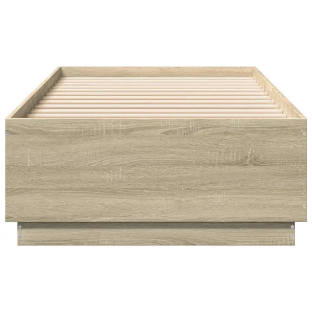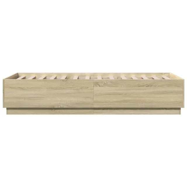 vidaXL Posteljni okvir z LED lučkami sonoma hrast 90x200 cm inž. les