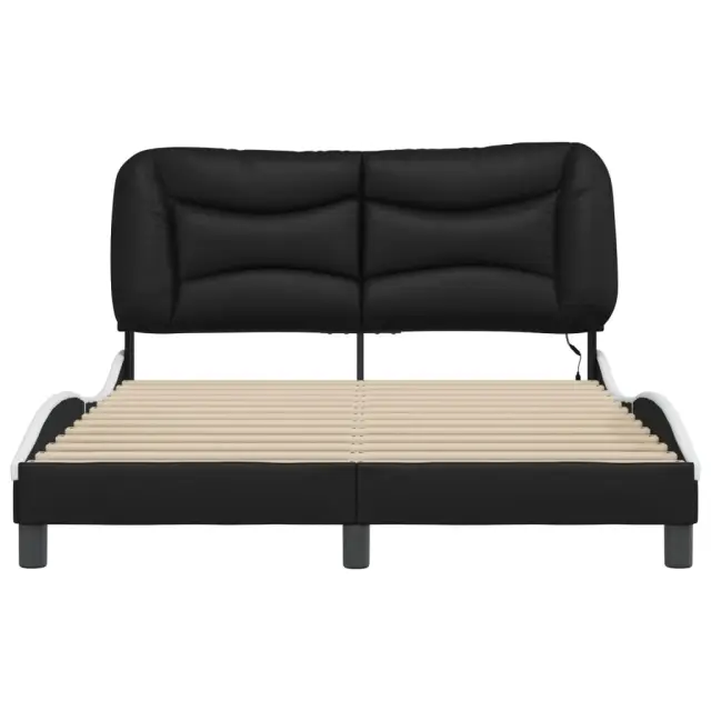 Zagotovite si boljši spanec s tem posteljnim okvirjem z LED lučkami! Je prijeten dodatek za vsako spalnico. Trpežno umetno usnje: Vrhunsko umetno usnje je zelo vzdržljiv material. Je odporno na madeže, zato ga lahko preprosto čistite z vlažno krpo. Gladka površina mu prav tako daje razkošen videz in lepoto pravega usnja.Letvice iz vezanega lesa: Letvice iz vezanega lesa omogočajo dobro porazdelitev teže in zagotavljajo, da vzmetnica ostane na mestu ob vsakem zasuku in obračanju med spanjem.Udobna opora: To vzglavje za posteljo vam zagotavlja odlično oporo za hrbet, ko sedite na postelji in berete ali gledate filme.Barvit LED trak: Vnesite igrivost v temo z barvitimi LED lučkami! Kljuke in zanke na hrbtni strani vzglavja lahko uporabite za pritrditev LED lučk.Valovita stranica: Valoviti videz posteljnega okvirja je eleganten in prefinjen. Dekorju v vašem domu dodaja sodoben in eleganten pridih ter tako postane osrednja točka spalnice. Dobro je vedeti:Vzmetnica ni priložena tej postelji. Ponujamo različno izbiro ležišč. V naši trgovini si lahko ogledate ustrezne vzmetnice.Izdelek ima priključek USB, ki zahteva certificiran vir napajanja 5 V USB (ni priložen).Posteljni okvir:Barva: Črna in belaMaterial: Umetno usnje (75 % polivinilklorid, 5 % bombaž, 20 % poliester), kovina, trdna borovina, vezan lesCelotne dimenzije: 218 x 145 x 74,5 cm (D x Š x V)Velikost primerne vzmetnice: 140 x 200 cm (Š x D) (vzmetnica ni priložena)Potrebno sestavljanje: DaOblazinjeno vzglavje:Barva: ČrnaMaterial: Umetno usnje (75 % polivinilklorid, 5 % bombaž, 20 % poliester)Material polnila: PP vlaknaDimenzije: 150 x 15 x 48 cm (D x Š x V)Primerna širina vzmetnice: 140 cmLED trak:Dolžina: 55 cmNapetost: DC 5 VDolžina kabla USB: 140 cmDolžina električnega kabla: 30 cmIP ocena: IP65Paket vsebuje:1 x Posteljni okvir1 x Oblazinjeno vzglavje2 x LED trak 3213939