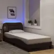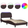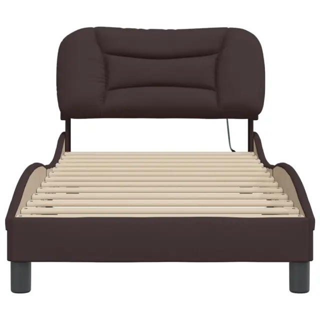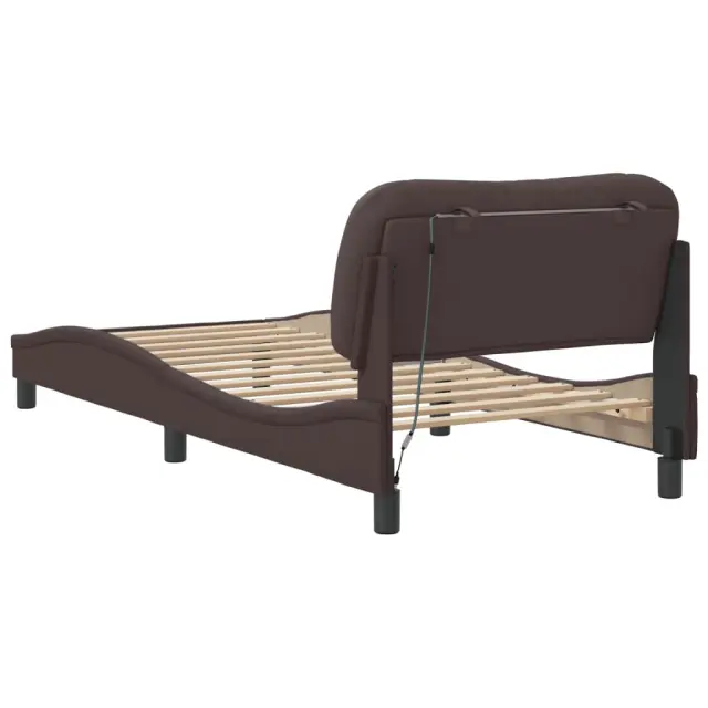 Zagotovite si boljši spanec s tem posteljnim okvirjem z LED lučkami! Je prijeten dodatek za vsako spalnico. Trpežno blago: Blago zagotavlja preprost in čist videz, poleg tega pa je zračno in trpežno.Letvice iz vezanega lesa: Letvice iz vezanega lesa omogočajo dobro porazdelitev teže in zagotavljajo, da vzmetnica ostane na mestu ob vsakem zasuku in obračanju med spanjem.Udobna opora: To vzglavje za posteljo vam zagotavlja odlično oporo za hrbet, ko sedite na postelji in berete ali gledate filme.Barvit LED trak: Vnesite igrivost v temo z barvitimi LED lučkami! Kljuke in zanke na hrbtni strani vzglavja lahko uporabite za pritrditev LED lučk.Valovita stranica: Valoviti videz posteljnega okvirja je eleganten in prefinjen. Dekorju v vašem domu dodaja sodoben in eleganten pridih ter tako postane osrednja točka spalnice. Dobro je vedeti:Vzmetnica ni priložena tej postelji. Ponujamo različno izbiro ležišč. V naši trgovini si lahko ogledate ustrezne vzmetnice.Izdelek ima priključek USB, ki zahteva certificiran vir napajanja 5 V USB (ni priložen).Posteljni okvir:Barva: Temno rjavaMaterial: Tkanina (100 % poliester), kovina, trdna borovina, vezan les, inženirski lesCelotne dimenzije: 208 x 95 x 74,5 cm (D x Š x V)Velikost primerne vzmetnice: 90 x 190 cm (Š x D) (vzmetnica ni priložena)Potrebno sestavljanje: DaOblazinjeno vzglavje:Barva: Temno rjavaMaterial: Blago (100 % poliester)Material polnila: PP vlaknaDimenzije: 100 x 15 x 48 cm (D x Š x V)Primerna širina vzmetnice: 90 cmLED trak:Dolžina: 55 cmNapetost: DC 5 VDolžina kabla USB: 140 cmDolžina električnega kabla: 30 cmIP ocena: IP65Paket vsebuje:1 x Posteljni okvir1 x Oblazinjeno vzglavje1 x LED trak 3213672