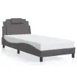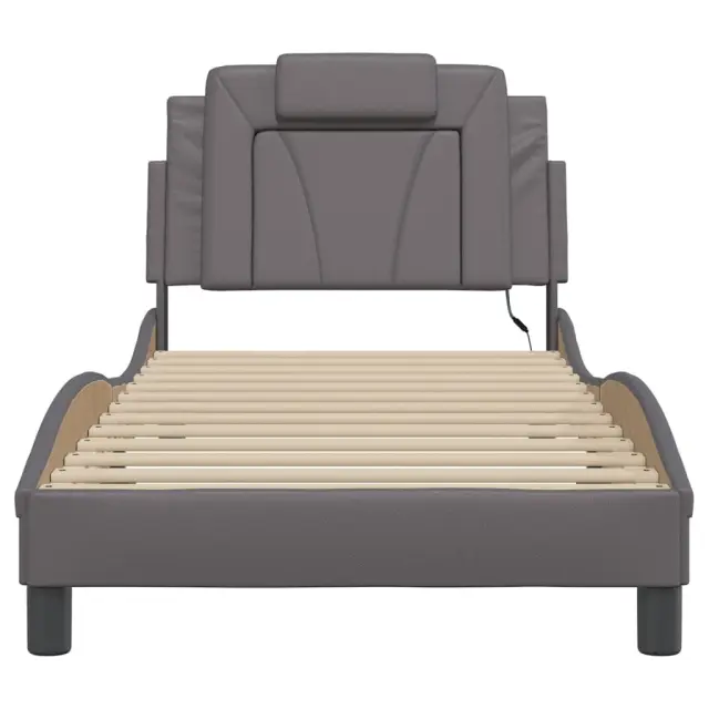 Zagotovite si boljši spanec s tem posteljnim okvirjem z LED lučkami! Je prijeten dodatek za vsako spalnico. Trpežno umetno usnje: Vrhunsko umetno usnje je zelo vzdržljiv material. Je odporno na madeže, zato ga lahko preprosto čistite z vlažno krpo. Gladka površina mu prav tako daje razkošen videz in lepoto pravega usnja.Letvice iz vezanega lesa: Letvice iz vezanega lesa omogočajo dobro porazdelitev teže in zagotavljajo, da vzmetnica ostane na mestu ob vsakem zasuku in obračanju med spanjem. Odlična podpora: Vzglavna stranica je napolnjena s peno za izjemno mehkobo in optimalno udobje ter zagotavlja odlično podporo hrbtu, ko sedite v postelji in berete ali gledate televizijo. Barvit LED trak: Vnesite igrivost v temo z barvitimi LED lučkami! Kljuke in zanke na hrbtni strani vzglavja lahko uporabite za pritrditev LED lučk. Valovita stranica: Valoviti videz posteljnega okvirja je eleganten in prefinjen. Dekorju v vašem domu dodaja sodoben in eleganten pridih ter tako postane osrednja točka spalnice. Dobro je vedeti:Vzmetnica ni priložena tej postelji. Ponujamo različno izbiro ležišč. V naši trgovini si lahko ogledate ustrezne vzmetnice.Izdelek ima priključek USB, ki zahteva certificiran vir napajanja 5 V USB (ni priložen).Posteljni okvir z vzglavjem:Barva: SivaMaterial: Umetno usnje (75 % polivinilklorid, 5 % bombaž, 20 % poliester), kovina, trdna borovina, vezan lesCelotne dimenzije: 218 x 85 x 74,5 cm (D x Š x V)Velikost primerne vzmetnice: 80 x 200 cm (Š x D) (vzmetnica ni priložena)Oblazinjeno vzglavje:Barva: SivaMaterial: Umetno usnje (75 % polivinilklorid, 5 % bombaž, 20 % poliester)Material polnila: PenaDimenzije: 80 x 15 x 49 cm (D x Š x V)Širina primerne vzmetnice: 80 cmLED trak:Dolžina: 56 cmNapetost: DC 5 VDolžina kabla USB : 150 cmDolžina električnega kabla: 30 cmIP ocena: IP65S simbolom za rezanje s škarjamiPotrebno sestavljanje: DaPaket vsebuje:1 x Posteljni okvir z vzglavjem1 x Oblazinjeno vzglavje1 x LED trak 3213983