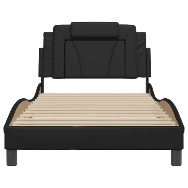 Zagotovite si boljši spanec s tem posteljnim okvirjem z LED lučkami! Je prijeten dodatek za vsako spalnico. Trpežno umetno usnje: Vrhunsko umetno usnje je zelo vzdržljiv material. Je odporno na madeže, zato ga lahko preprosto čistite z vlažno krpo. Gladka površina mu prav tako daje razkošen videz in lepoto pravega usnja.Letvice iz vezanega lesa: Letvice iz vezanega lesa omogočajo dobro porazdelitev teže in zagotavljajo, da vzmetnica ostane na mestu ob vsakem zasuku in obračanju med spanjem. Odlična podpora: Vzglavna stranica je napolnjena s peno za izjemno mehkobo in optimalno udobje ter zagotavlja odlično podporo hrbtu, ko sedite v postelji in berete ali gledate televizijo. Barvit LED trak: Vnesite igrivost v temo z barvitimi LED lučkami! Kljuke in zanke na hrbtni strani vzglavja lahko uporabite za pritrditev LED lučk. Valovita stranica: Valoviti videz posteljnega okvirja je eleganten in prefinjen. Dekorju v vašem domu dodaja sodoben in eleganten pridih ter tako postane osrednja točka spalnice. Dobro je vedeti:Vzmetnica ni priložena tej postelji. Ponujamo različno izbiro ležišč. V naši trgovini si lahko ogledate ustrezne vzmetnice.Izdelek ima priključek USB, ki zahteva certificiran vir napajanja 5 V USB (ni priložen).Posteljni okvir z vzglavjem:Barva: ČrnaMaterial: Umetno usnje (75 % polivinilklorid, 5 % bombaž, 20 % poliester), kovina, trdna borovina, vezan lesCelotne dimenzije: 218 x 105 x 74,5 cm (D x Š x V)Velikost primerne vzmetnice: 100 x 200 cm (Š x D) (vzmetnica ni priložena)Oblazinjeno vzglavje:Barva: ČrnaMaterial: Umetno usnje (75 % polivinilklorid, 5 % bombaž, 20 % poliester)Material polnila: PenaDimenzije: 100 x 15 x 49 cm (D x Š x V)Širina primerne vzmetnice: 100 cmLED trak:Dolžina: 56 cmNapetost: DC 5 VDolžina kabla USB : 150 cmDolžina električnega kabla: 30 cmIP ocena: IP65S simbolom za rezanje s škarjamiPotrebno sestavljanje: DaPaket vsebuje:1 x Posteljni okvir z vzglavjem1 x Oblazinjeno vzglavje1 x LED trak 3214001