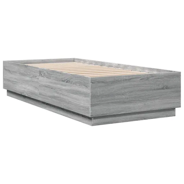 vidaXL Posteljni okvir z LED lučkami siva sonoma 100x200 cm inž. les