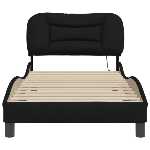Zagotovite si boljši spanec s tem posteljnim okvirjem z LED lučkami! Je prijeten dodatek za vsako spalnico. Trpežno blago: Blago zagotavlja preprost in čist videz, poleg tega pa je zračno in trpežno.Letvice iz vezanega lesa: Letvice iz vezanega lesa omogočajo dobro porazdelitev teže in zagotavljajo, da vzmetnica ostane na mestu ob vsakem zasuku in obračanju med spanjem.Udobna opora: To vzglavje za posteljo vam zagotavlja odlično oporo za hrbet, ko sedite na postelji in berete ali gledate filme.Barvit LED trak: Vnesite igrivost v temo z barvitimi LED lučkami! Kljuke in zanke na hrbtni strani vzglavja lahko uporabite za pritrditev LED lučk.Valovita stranica: Valoviti videz posteljnega okvirja je eleganten in prefinjen. Dekorju v vašem domu dodaja sodoben in eleganten pridih ter tako postane osrednja točka spalnice. Dobro je vedeti:Vzmetnica ni priložena tej postelji. Ponujamo različno izbiro ležišč. V naši trgovini si lahko ogledate ustrezne vzmetnice.Izdelek ima priključek USB, ki zahteva certificiran vir napajanja 5 V USB (ni priložen).Posteljni okvir:Barva: ČrnaMaterial: Tkanina (100 % poliester), kovina, trdna borovina, vezan les, inženirski lesCelotne dimenzije: 208 x 95 x 74,5 cm (D x Š x V)Velikost primerne vzmetnice: 90 x 190 cm (Š x D) (vzmetnica ni priložena)Potrebno sestavljanje: DaOblazinjeno vzglavje:Barva: ČrnaMaterial: Blago (100 % poliester)Material polnila: PP vlaknaDimenzije: 100 x 15 x 48 cm (D x Š x V)Primerna širina vzmetnice: 90 cmLED trak:Dolžina: 55 cmNapetost: DC 5 VDolžina kabla USB: 140 cmDolžina električnega kabla: 30 cmIP ocena: IP65Paket vsebuje:1 x Posteljni okvir1 x Oblazinjeno vzglavje1 x LED trak 3213671