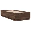 vidaXL Posteljni okvir z LED lučkami rjavi hrast 90x200 cm inž. les