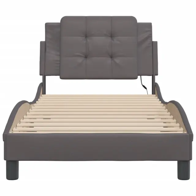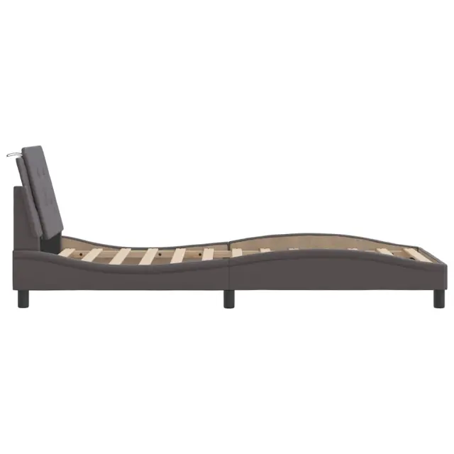 Zagotovite si boljši spanec s tem posteljnim okvirjem z LED lučkami! Je prijeten dodatek za vsako spalnico. Trpežno umetno usnje: Vrhunsko umetno usnje je zelo vzdržljiv material. Je odporno na madeže, zato ga lahko preprosto čistite z vlažno krpo. Gladka površina mu prav tako daje razkošen videz in lepoto pravega usnja.Letvice iz vezanega lesa: Letvice iz vezanega lesa omogočajo dobro porazdelitev teže in zagotavljajo, da vzmetnica ostane na mestu ob vsakem zasuku in obračanju med spanjem.Udobna opora: To vzglavje za posteljo vam zagotavlja odlično oporo za hrbet, ko sedite na postelji in berete ali gledate filme.Barvit LED trak: Vnesite igrivost v temo z barvitimi LED lučkami! Kljuke in zanke na hrbtni strani vzglavja lahko uporabite za pritrditev LED lučk.Valovita stranica: Valoviti videz posteljnega okvirja je eleganten in prefinjen. Dekorju v vašem domu dodaja sodoben in eleganten pridih ter tako postane osrednja točka spalnice. Dobro je vedeti:Vzmetnica ni priložena tej postelji. Ponujamo različno izbiro ležišč. V naši trgovini si lahko ogledate ustrezne vzmetnice.Izdelek ima priključek USB, ki zahteva certificiran vir napajanja 5 V USB (ni priložen).Posteljni okvir:Barva: SivaMaterial: Umetno usnje (75 % polivinilklorid, 5 % bombaž, 20 % poliester), kovina, trdna borovina, vezan les, inženirski lesCelotne dimenzije: 218 x 85 x 74,5 cm (D x Š x V)Velikost primerne vzmetnice: 80 x 200 cm (Š x D) (vzmetnica ni priložena)Potrebno sestavljanje: DaOblazinjeno vzglavje:Barva: SivaMaterial: Umetno usnje (75 % polivinilklorid, 5 % bombaž, 20 % poliester)Material polnila: PenaDimenzije: 80 x 3 x 48 cm (D x Š x V)Širina primerne vzmetnice: 80 cmLED trak:Dolžina: 55 cmNapetost: DC 5 VDolžina kabla USB: 140 cmDolžina električnega kabla: 30 cmIP ocena: IP65Paket vsebuje:1 x Posteljni okvir1 x Oblazinjeno vzglavje1 x LED trak 3214071