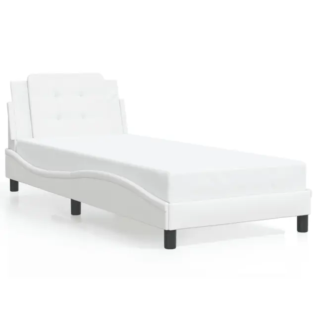 Zagotovite si boljši spanec s tem posteljnim okvirjem z vzglavjem! Je prijeten dodatek za vsako spalnico. Trpežno umetno usnje: Vrhunsko umetno usnje je zelo vzdržljiv material. Je odporno na madeže, zato ga lahko preprosto čistite z vlažno krpo. Gladka površina mu prav tako daje razkošen videz in lepoto pravega usnja.Letvice iz vezanega lesa: Letvice iz vezanega lesa omogočajo dobro porazdelitev teže in zagotavljajo, da vzmetnica ostane na mestu ob vsakem zasuku in obračanju med spanjem.Odlična podpora: Vzglavna stranica je napolnjena s peno za izjemno mehkobo in optimalno udobje ter zagotavlja odlično podporo hrbtu, ko sedite v postelji in berete ali gledate televizijo.Priročna zasnova: Oblazinjeno vzglavje ima zadrgo za enostavno namestitev.Valovita stranica: Valoviti videz posteljnega okvirja je eleganten in prefinjen. Dekorju v vašem domu dodaja sodoben in eleganten pridih ter tako postane osrednja točka spalnice. Dobro je vedeti:Vzmetnica ni priložena tej postelji. Ponujamo različno izbiro ležišč. V naši trgovini si lahko ogledate ustrezne vzmetnice.Posteljni okvir z vzglavjem:Barva: BelaMaterial: Umetno usnje (75 % polivinilklorid, 5 % bombaž, 20 % poliester), kovina, trdna borovina, vezan les, inženirski lesCelotne dimenzije: 218 x 105 x 74,5 cm (D x Š x V)Velikost primerne vzmetnice: 100 x 200 cm (Š x D) (vzmetnica ni priložena)Oblazinjeno vzglavje:Barva: BelaMaterial: Umetno usnje (75 % polivinilklorid, 5 % bombaž, 20 % poliester)Material polnila: PenaDimenzije: 100 x 3 x 48 cm (D x Š x V)Širina primerne vzmetnice: 100 cmPotrebno sestavljanje: DaPaket vsebuje:1 x Posteljni okvir z vzglavjem1 x Oblazinjeno vzglavje 3208164
