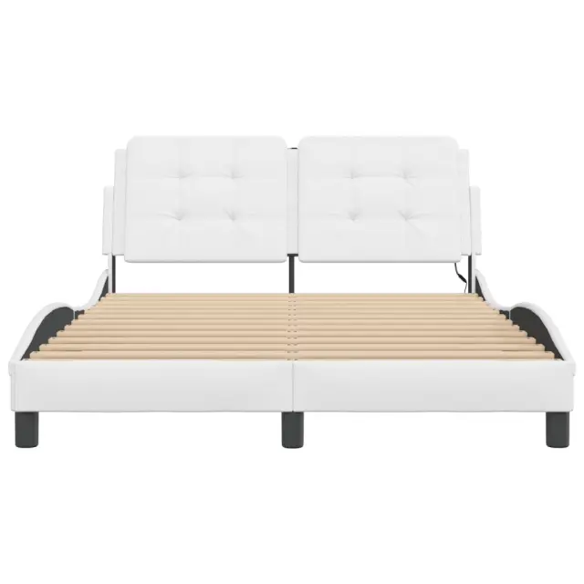 Zagotovite si boljši spanec s tem posteljnim okvirjem z LED lučkami! Je prijeten dodatek za vsako spalnico. Trpežno umetno usnje: Vrhunsko umetno usnje je zelo vzdržljiv material. Je odporno na madeže, zato ga lahko preprosto čistite z vlažno krpo. Gladka površina mu prav tako daje razkošen videz in lepoto pravega usnja.Letvice iz vezanega lesa: Letvice iz vezanega lesa omogočajo dobro porazdelitev teže in zagotavljajo, da vzmetnica ostane na mestu ob vsakem zasuku in obračanju med spanjem.Udobna opora: To vzglavje za posteljo vam zagotavlja odlično oporo za hrbet, ko sedite na postelji in berete ali gledate filme.Barvit LED trak: Vnesite igrivost v temo z barvitimi LED lučkami! Kljuke in zanke na hrbtni strani vzglavja lahko uporabite za pritrditev LED lučk.Valovita stranica: Valoviti videz posteljnega okvirja je eleganten in prefinjen. Dekorju v vašem domu dodaja sodoben in eleganten pridih ter tako postane osrednja točka spalnice. Dobro je vedeti:Vzmetnica ni priložena tej postelji. Ponujamo različno izbiro ležišč. V naši trgovini si lahko ogledate ustrezne vzmetnice.Izdelek ima priključek USB, ki zahteva certificiran vir napajanja 5 V USB (ni priložen).Posteljni okvir:Barva: BelaMaterial: Umetno usnje (75 % polivinilklorid, 5 % bombaž, 20 % poliester), kovina, trdna borovina, vezan lesCelotne dimenzije: 218 x 145 x 74,5 cm (D x Š x V)Velikost primerne vzmetnice: 140 x 200 cm (Š x D) (vzmetnica ni priložena)Potrebno sestavljanje: DaOblazinjeno vzglavje:Barva: BelaMaterial: Umetno usnje (75 % polivinilklorid, 5 % bombaž, 20 % poliester)Material polnila: PenaDimenzije: 140 x 3 x 48 cm (D x Š x V)Primerna širina vzmetnice: 140 cmLED trak:Dolžina: 55 cmNapetost: DC 5 VDolžina kabla USB: 140 cmDolžina električnega kabla: 30 cmIP ocena: IP65Paket vsebuje:1 x Posteljni okvir1 x Oblazinjeno vzglavje2 x LED trak 3214111