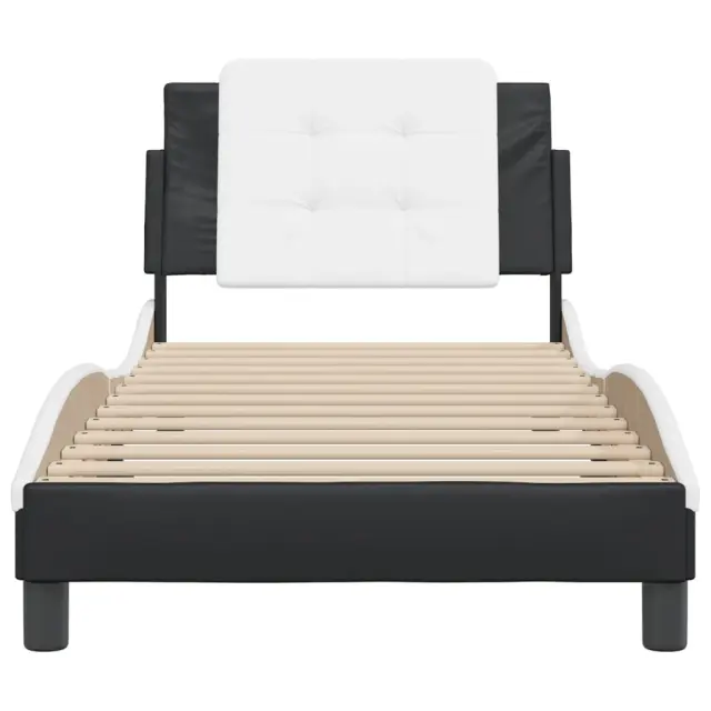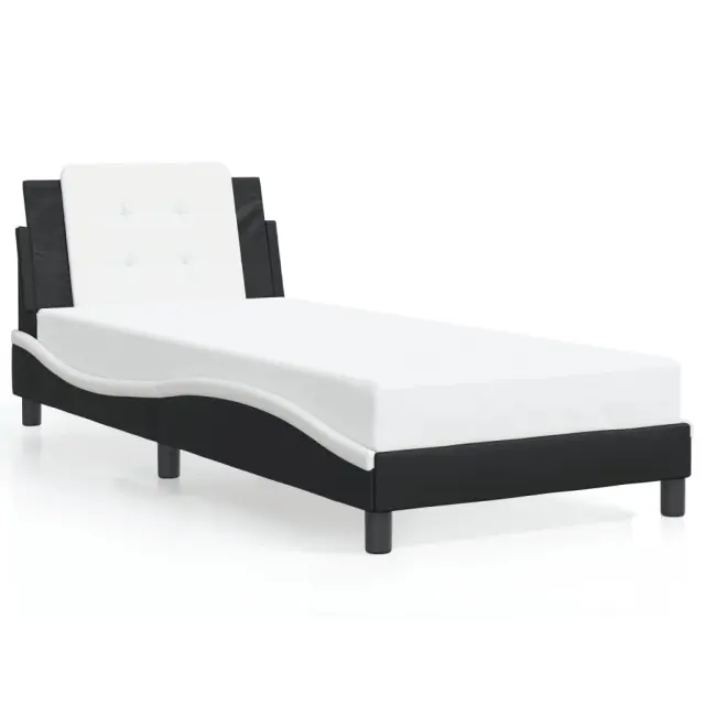 Zagotovite si boljši spanec s tem posteljnim okvirjem z vzglavjem! Je prijeten dodatek za vsako spalnico. Trpežno umetno usnje: Vrhunsko umetno usnje je zelo vzdržljiv material. Je odporno na madeže, zato ga lahko preprosto čistite z vlažno krpo. Gladka površina mu prav tako daje razkošen videz in lepoto pravega usnja.Letvice iz vezanega lesa: Letvice iz vezanega lesa omogočajo dobro porazdelitev teže in zagotavljajo, da vzmetnica ostane na mestu ob vsakem zasuku in obračanju med spanjem.Odlična podpora: Vzglavna stranica je napolnjena s peno za izjemno mehkobo in optimalno udobje ter zagotavlja odlično podporo hrbtu, ko sedite v postelji in berete ali gledate televizijo.Priročna zasnova: Oblazinjeno vzglavje ima zadrgo za enostavno namestitev.Valovita stranica: Valoviti videz posteljnega okvirja je eleganten in prefinjen. Dekorju v vašem domu dodaja sodoben in eleganten pridih ter tako postane osrednja točka spalnice. Dobro je vedeti:Vzmetnica ni priložena tej postelji. Ponujamo različno izbiro ležišč. V naši trgovini si lahko ogledate ustrezne vzmetnice.Posteljni okvir z vzglavjem:Barva: Črna in belaMaterial: Umetno usnje (75 % polivinilklorid, 5 % bombaž, 20 % poliester), kovina, trdna borovina, vezan les, inženirski lesCelotne dimenzije: 218 x 85 x 74,5 cm (D x Š x V)Velikost primerne vzmetnice: 80 x 200 cm (Š x D) (vzmetnica ni priložena)Oblazinjeno vzglavje:Barva: Bela in črnaMaterial: Umetno usnje (75 % polivinilklorid, 5 % bombaž, 20 % poliester)Material polnila: PenaDimenzije: 80 x 3 x 48 cm (D x Š x V)Širina primerne vzmetnice: 80 cmPotrebno sestavljanje: DaPaket vsebuje:1 x Posteljni okvir z vzglavjem1 x Oblazinjeno vzglavje 3208147