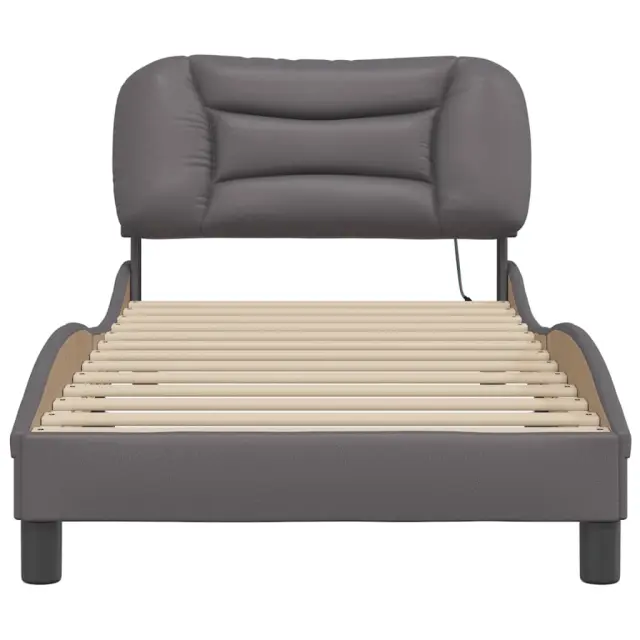 Zagotovite si boljši spanec s tem posteljnim okvirjem z LED lučkami! Je prijeten dodatek za vsako spalnico. Trpežno umetno usnje: Vrhunsko umetno usnje je zelo vzdržljiv material. Je odporno na madeže, zato ga lahko preprosto čistite z vlažno krpo. Gladka površina mu prav tako daje razkošen videz in lepoto pravega usnja.Letvice iz vezanega lesa: Letvice iz vezanega lesa omogočajo dobro porazdelitev teže in zagotavljajo, da vzmetnica ostane na mestu ob vsakem zasuku in obračanju med spanjem.Udobna opora: To vzglavje za posteljo vam zagotavlja odlično oporo za hrbet, ko sedite na postelji in berete ali gledate filme.Barvit LED trak: Vnesite igrivost v temo z barvitimi LED lučkami! Kljuke in zanke na hrbtni strani vzglavja lahko uporabite za pritrditev LED lučk.Valovita stranica: Valoviti videz posteljnega okvirja je eleganten in prefinjen. Dekorju v vašem domu dodaja sodoben in eleganten pridih ter tako postane osrednja točka spalnice. Dobro je vedeti:Vzmetnica ni priložena tej postelji. Ponujamo različno izbiro ležišč. V naši trgovini si lahko ogledate ustrezne vzmetnice.Izdelek ima priključek USB, ki zahteva certificiran vir napajanja 5 V USB (ni priložen).Posteljni okvir:Barva: SivaMaterial: Umetno usnje (75 % polivinilklorid, 5 % bombaž, 20 % poliester), kovina, trdna borovina, vezan les, inženirski lesCelotne dimenzije: 218 x 85 x 74,5 cm (D x Š x V)Velikost primerne vzmetnice: 80 x 200 cm (Š x D) (vzmetnica ni priložena)Potrebno sestavljanje: DaOblazinjeno vzglavje:Barva: SivaMaterial: Umetno usnje (75 % polivinilklorid, 5 % bombaž, 20 % poliester)Material polnila: PP vlaknaDimenzije: 90 x 15 x 48 cm (D x Š x V)Širina primerne vzmetnice: 80 cmLED trak:Dolžina: 55 cmNapetost: DC 5 VDolžina kabla USB: 140 cmDolžina električnega kabla: 30 cmIP ocena: IP65Paket vsebuje:1 x Posteljni okvir1 x Oblazinjeno vzglavje1 x LED trak 3213895