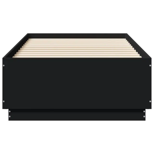 vidaXL Posteljni okvir z LED lučkami črn 75x190 cm inženirski les