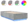 vidaXL Posteljni okvir z LED lučkami betonsko siv 90x200 cm inž. les