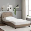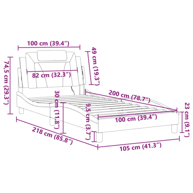 Zagotovite si boljši spanec s tem posteljnim okvirjem z LED lučkami! Je prijeten dodatek za vsako spalnico. Trpežno umetno usnje: Vrhunsko umetno usnje je zelo vzdržljiv material. Je odporno na madeže, zato ga lahko preprosto čistite z vlažno krpo. Gladka površina mu prav tako daje razkošen videz in lepoto pravega usnja.Letvice iz vezanega lesa: Letvice iz vezanega lesa omogočajo dobro porazdelitev teže in zagotavljajo, da vzmetnica ostane na mestu ob vsakem zasuku in obračanju med spanjem. Odlična podpora: Vzglavna stranica je napolnjena s peno za izjemno mehkobo in optimalno udobje ter zagotavlja odlično podporo hrbtu, ko sedite v postelji in berete ali gledate televizijo. Barvit LED trak: Vnesite igrivost v temo z barvitimi LED lučkami! Kljuke in zanke na hrbtni strani vzglavja lahko uporabite za pritrditev LED lučk. Valovita stranica: Valoviti videz posteljnega okvirja je eleganten in prefinjen. Dekorju v vašem domu dodaja sodoben in eleganten pridih ter tako postane osrednja točka spalnice. Dobro je vedeti:Vzmetnica ni priložena tej postelji. Ponujamo različno izbiro ležišč. V naši trgovini si lahko ogledate ustrezne vzmetnice.Izdelek ima priključek USB, ki zahteva certificiran vir napajanja 5 V USB (ni priložen).Posteljni okvir z vzglavjem:Barva: KapučinoMaterial: Umetno usnje (75 % polivinilklorid, 5 % bombaž, 20 % poliester), kovina, trdna borovina, vezan lesCelotne dimenzije: 218 x 105 x 74,5 cm (D x Š x V)Velikost primerne vzmetnice: 100 x 200 cm (Š x D) (vzmetnica ni priložena)Oblazinjeno vzglavje:Barva: KapučinoMaterial: Umetno usnje (75 % polivinilklorid, 5 % bombaž, 20 % poliester)Material polnila: PenaDimenzije: 100 x 15 x 49 cm (D x Š x V)Širina primerne vzmetnice: 100 cmLED trak:Dolžina: 56 cmNapetost: DC 5 VDolžina kabla USB : 150 cmDolžina električnega kabla: 30 cmIP ocena: IP65S simbolom za rezanje s škarjamiPotrebno sestavljanje: DaPaket vsebuje:1 x Posteljni okvir z vzglavjem1 x Oblazinjeno vzglavje1 x LED trak 3214005