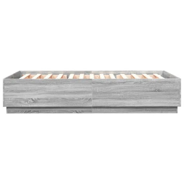vidaXL Posteljni okvir z LED lučkami siva sonoma 150x200 cm inž. les