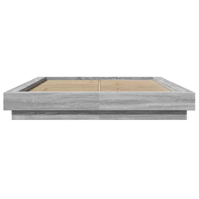 vidaXL Posteljni okvir z LED lučkami siva sonoma 135x190 cm inž. les
