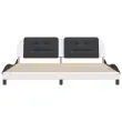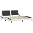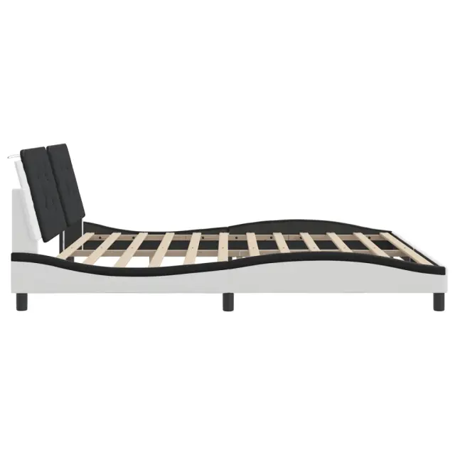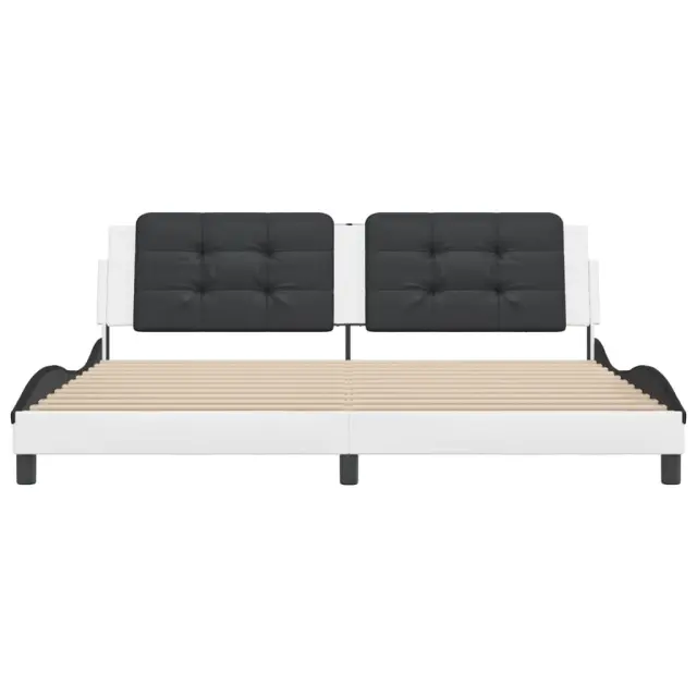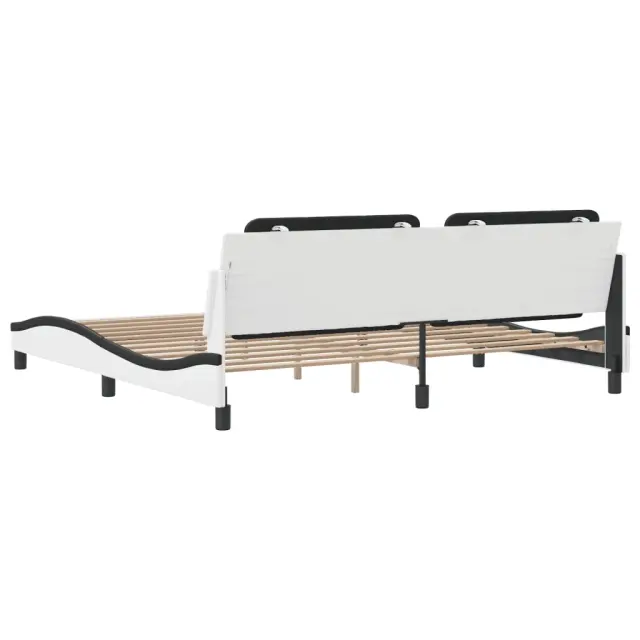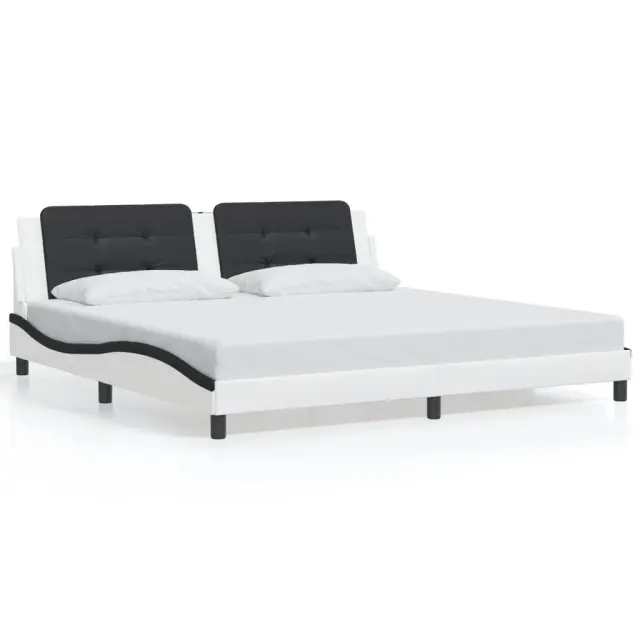 Zagotovite si boljši spanec s tem posteljnim okvirjem z vzglavjem! Je prijeten dodatek za vsako spalnico. Trpežno umetno usnje: Vrhunsko umetno usnje je zelo vzdržljiv material. Je odporno na madeže, zato ga lahko preprosto čistite z vlažno krpo. Gladka površina mu prav tako daje razkošen videz in lepoto pravega usnja.Letvice iz vezanega lesa: Letvice iz vezanega lesa omogočajo dobro porazdelitev teže in zagotavljajo, da vzmetnica ostane na mestu ob vsakem zasuku in obračanju med spanjem.Odlična podpora: Vzglavna stranica je napolnjena s peno za izjemno mehkobo in optimalno udobje ter zagotavlja odlično podporo hrbtu, ko sedite v postelji in berete ali gledate televizijo.Priročna zasnova: Oblazinjeno vzglavje ima zadrgo za enostavno namestitev.Valovita stranica: Valoviti videz posteljnega okvirja je eleganten in prefinjen. Dekorju v vašem domu dodaja sodoben in eleganten pridih ter tako postane osrednja točka spalnice. Dobro je vedeti:Vzmetnica ni priložena tej postelji. Ponujamo različno izbiro ležišč. V naši trgovini si lahko ogledate ustrezne vzmetnice.Posteljni okvir z vzglavjem:Barva: Bela in črnaMaterial: Umetno usnje (75 % polivinilklorid, 5 % bombaž, 20 % poliester), kovina, trdna borovina, vezan lesCelotne dimenzije: 218 x 205 x 74,5 cm (D x Š x V)Velikost primerne vzmetnice: 200 x 200 cm (Š x D) (vzmetnica ni priložena)Oblazinjeno vzglavje:Barva: Črna in belaMaterial: Umetno usnje (75 % polivinilklorid, 5 % bombaž, 20 % poliester)Material polnila: PenaDimenzije: 200 x 3 x 48 cm (D x Š x V)Primerna širina vzmetnice: 200 cmPotrebno sestavljanje: DaPaket vsebuje:1 x Posteljni okvir z vzglavjem1 x Oblazinjeno vzglavje 3208211