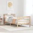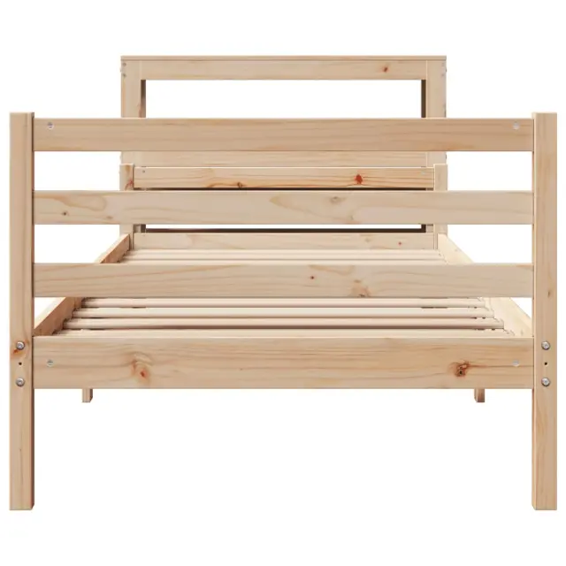 S tem lesenim posteljnim okvirjem lahko uživate v odličnem spancu! To je praktičen in dekorativen dodatek za vaše notranje prostore. Trdna borovina: Trdna borovina je čudovit naravni material. Borovina ima ravne vzorce, grče pa dajejo materialu njegov značilen, rustikalen videz.Močan posteljni okvir: Lesen okvir zagotavlja trdnost in stabilnost. Letvice iz vezanega lesa omogočajo dobro porazdelitev teže in zagotavljajo, da vzmetnica ostane na mestu ob vsakem zasuku in obračanju med spanjem.Funkcionalno vzglavje in podnožje: Vzglavje in podnožje lesene postelje ohranjata ležišče na mestu. Poleg tega vzglavje zagotavlja odlično oporo hrbtu, ko sedite v postelji in berete ali gledate televizijo.Primerna uporaba: Ta enojna postelja je odlična rešitev za majhne prostore, večnamenske sobe, enoposteljna ležišča in starejše otroke. Ne glede na vaše potrebe ali načrte ta enojna postelja ustreza različnim potrebam!Veliko prostora za shranjevanje: To elegantno vzglavje ima dve priročni polici, ki ponujata veliko prostora za shranjevanje, da bodo vaše večerne potrebščine na dosegu roke. Dobro je vedeti:Vzmetnica ni priložena tej postelji. Ponujamo različno izbiro ležišč. V naši trgovini si lahko ogledate ustrezne vzmetnice.Material posteljnega okvirja: Trdna borovina (neobdelana)Material letvic: Vezan lesCelotne dimenzije: 224,5 x 106 x 82 cm (D x Š x V)Velikost primerne vzmetnice: 100 x 200 cm (Š x D) (vzmetnica ni priložena)Dimenzije vzglavja: 106 x 19 x 82 cm (D x Š x V)S policami za shranjevanjePotrebno sestavljanje: DaPaket vsebuje:1 x Posteljni okvir1 x Vzglavje 3305939