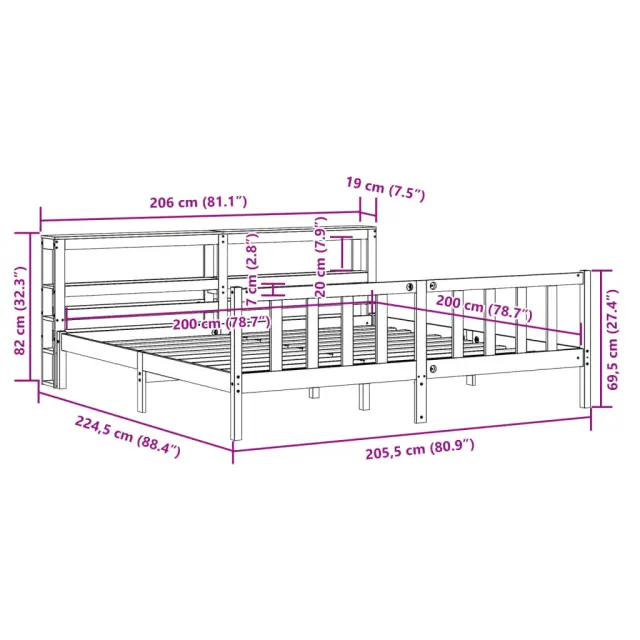 S tem lesenim posteljnim okvirjem lahko uživate v odličnem spancu! To je praktičen in dekorativen dodatek za vaše notranje prostore. Trdna borovina: Trdna borovina je čudovit naravni material. Borovina ima ravne vzorce, grče pa dajejo materialu njegov značilen, rustikalen videz.Stabilen posteljni okvir: Lesen okvir zagotavlja trdnost in stabilnost.Trdne letvice: Letvice iz vezanega lesa omogočajo dobro porazdelitev teže in zagotavljajo, da vzmetnica ostane na mestu ob vsakem zasuku in obračanju med spanjem.Odlična opora: Vzglavje zagotavlja odlično oporo hrbtu, ko sedite v postelji in berete ali gledate televizijo.Veliko prostora za shranjevanje: To elegantno vzglavje ima dve priročni polici, ki ponujata veliko prostora za shranjevanje, da bodo vaše večerne potrebščine na dosegu roke. Dobro je vedeti:Vzmetnica ni priložena tej postelji. Ponujamo različno izbiro ležišč. V naši trgovini si lahko ogledate ustrezne vzmetnice.Barva: Voščeno rjavaMaterial posteljnega okvirja: Trdna borovinaMaterial letvic: Vezan lesCelotne dimenzije: 224,5 x 206 x 82 cm (D x Š x V)Velikost primerne vzmetnice: 200 x 200 cm (Š x D) (vzmetnica ni priložena)Dimenzije vzglavja: 206 x 19 x 82 cm (D x Š x V)S policami za shranjevanjePotrebno sestavljanje: DaPaket vsebuje:1 x Posteljni okvir1 x Vzglavje 3305783