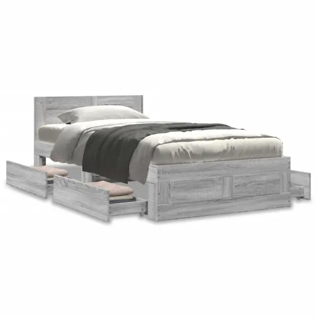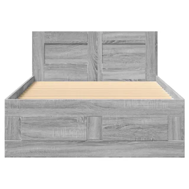 Zagotovite si boljši spanec s tem posteljnim okvirjem! Je prijeten dodatek za vsako spalnico. Vzdržljiv material: Posteljni okvir je izdelan iz inženirskega lesa. Inženirski les se ponaša z izjemno kakovostjo, gladko površino ter močjo, stabilnostjo in odpornostjo na vlago.Podnožje z letvami za optimalno podporo: Za podporo in zračnost ležišča je posteljni okvir opremljen z letvenim dnom.Funkcija shranjevanja: Ta posteljni okvir ima predale za dobro organizacijo revij, knjig, igrač in drugih manjših predmetov.Odlična opora: Vzglavje zagotavlja odlično oporo hrbtu, ko sedite v postelji in berete ali gledate televizijo. Dobro je vedeti:Vzmetnica ni priložena tej postelji. Ponujamo različno izbiro ležišč. V naši trgovini si lahko ogledate ustrezne vzmetnice.Barva: Siva sonomaMaterial posteljnega okvirja: Inženirski lesMaterial letvic: Vezan lesCelotne dimenzije: 203 x 93 x 69 cm (D x Š x V)Dimenzije predalov (vsak): 82 x 28,5 x 19 cm (D x Š x V)Velikost primerne vzmetnice: 90 x 200 cm (Š x D) (vzmetnica ni priložena)Potrebno sestavljanje: Da 3295588