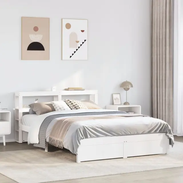 S tem lesenim posteljnim okvirjem lahko uživate v odličnem spancu! To je praktičen in dekorativen dodatek za vaše notranje prostore. Trdna borovina: Trdna borovina je čudovit naravni material. Borovina ima ravne vzorce, grče pa dajejo materialu njegov značilen, rustikalen videz.Močan posteljni okvir: Lesen okvir zagotavlja trdnost in stabilnost. Letvice iz vezanega lesa omogočajo dobro porazdelitev teže in zagotavljajo, da vzmetnica ostane na mestu ob vsakem zasuku in obračanju med spanjem.Vsestransko vzglavje: Ta posteljni okvir je opremljen z vzglavjem, ki zagotavlja odlično oporo hrbtu, ko sedite v postelji in berete ali gledate televizijo, hkrati pa služi tudi kot dekorativni element.Veliko prostora za shranjevanje: To elegantno vzglavje ima dve priročni polici, ki ponujata veliko prostora za shranjevanje, da bodo vaše večerne potrebščine na dosegu roke. Dobro je vedeti:Vzmetnica ni priložena tej postelji. Ponujamo različno izbiro ležišč. V naši trgovini si lahko ogledate ustrezne vzmetnice.Barva: BelaMaterial posteljnega okvirja: Trdna borovinaMaterial letvic: Vezan lesCelotne dimenzije: 224,5 x 156 x 82 cm (D x Š x V)Velikost primerne vzmetnice: 150 x 200 cm (Š x D) (vzmetnica ni priložena)Dimenzije vzglavja: 156 x 19 x 82 cm (D x Š x V)S policami za shranjevanjePotrebno sestavljanje: DaPaket vsebuje:1 x Posteljni okvir1 x Vzglavje 3305998