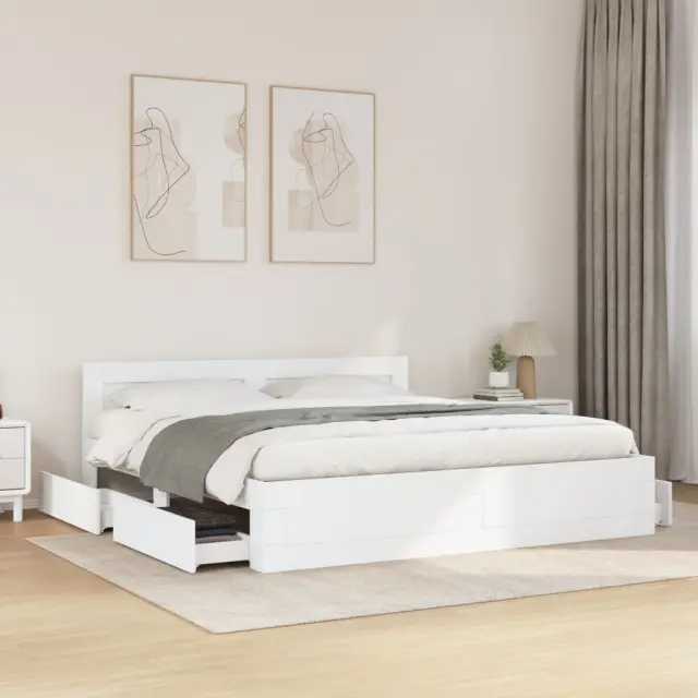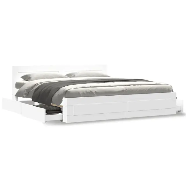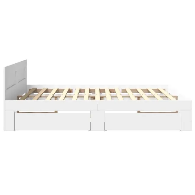 Zagotovite si boljši spanec s tem posteljnim okvirjem! Je prijeten dodatek za vsako spalnico. Vzdržljiv material: Posteljni okvir je izdelan iz inženirskega lesa. Inženirski les se ponaša z izjemno kakovostjo, gladko površino ter močjo, stabilnostjo in odpornostjo na vlago.Podnožje z letvami za optimalno podporo: Za podporo in zračnost ležišča je posteljni okvir opremljen z letvenim dnom.Funkcija shranjevanja: Ta posteljni okvir ima predale za dobro organizacijo revij, knjig, igrač in drugih manjših predmetov.Odlična opora: Vzglavje zagotavlja odlično oporo hrbtu, ko sedite v postelji in berete ali gledate televizijo. Dobro je vedeti:Vzmetnica ni priložena tej postelji. Ponujamo različno izbiro ležišč. V naši trgovini si lahko ogledate ustrezne vzmetnice.Barva: BelaMaterial posteljnega okvirja: Inženirski lesMaterial letvic: Vezan lesCelotne dimenzije: 203 x 183 x 69 cm (D x Š x V)Dimenzije predalov (vsak): 82 x 28,5 x 19 cm (D x Š x V)Velikost primerne vzmetnice: 180 x 200 cm (Š x D) (vzmetnica ni priložena)Potrebno sestavljanje: Da 3295541
