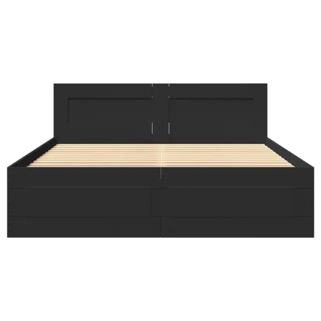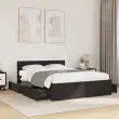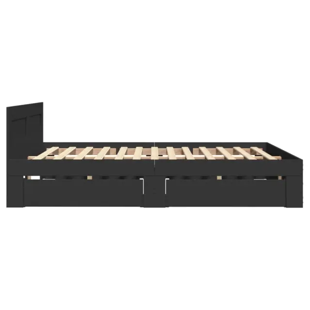 Zagotovite si boljši spanec s tem posteljnim okvirjem! Je prijeten dodatek za vsako spalnico. Vzdržljiv material: Posteljni okvir je izdelan iz inženirskega lesa. Inženirski les se ponaša z izjemno kakovostjo, gladko površino ter močjo, stabilnostjo in odpornostjo na vlago.Podnožje z letvami za optimalno podporo: Za podporo in zračnost ležišča je posteljni okvir opremljen z letvenim dnom.Funkcija shranjevanja: Ta posteljni okvir ima predale za dobro organizacijo revij, knjig, igrač in drugih manjših predmetov.Odlična opora: Vzglavje zagotavlja odlično oporo hrbtu, ko sedite v postelji in berete ali gledate televizijo. Dobro je vedeti:Vzmetnica ni priložena tej postelji. Ponujamo različno izbiro ležišč. V naši trgovini si lahko ogledate ustrezne vzmetnice.Barva: ČrnaMaterial posteljnega okvirja: Inženirski lesMaterial letvic: Vezan lesCelotne dimenzije: 193 x 123 x 69 cm (D x Š x V)Dimenzije predalov (vsak): 82 x 28,5 x 19 cm (D x Š x V)Velikost primerne vzmetnice: 120 x 190 cm (Š x D) (vzmetnica ni priložena)Potrebno sestavljanje: Da 3295605