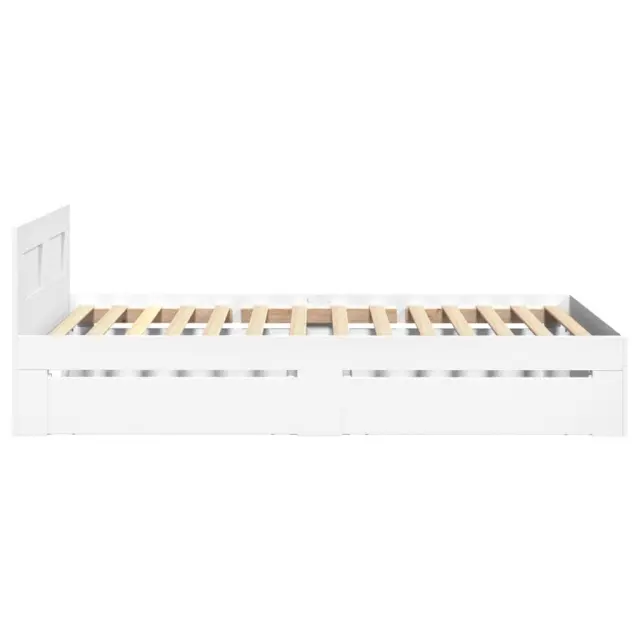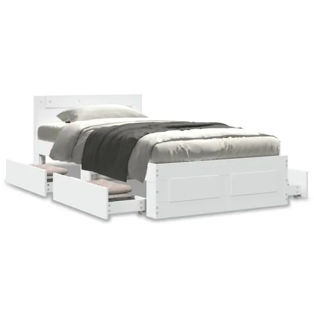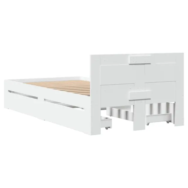 Zagotovite si boljši spanec s tem posteljnim okvirjem! Je prijeten dodatek za vsako spalnico. Vzdržljiv material: Posteljni okvir je izdelan iz inženirskega lesa. Inženirski les se ponaša z izjemno kakovostjo, gladko površino ter močjo, stabilnostjo in odpornostjo na vlago.Podnožje z letvami za optimalno podporo: Za podporo in zračnost ležišča je posteljni okvir opremljen z letvenim dnom.Funkcija shranjevanja: Ta posteljni okvir ima predale za dobro organizacijo revij, knjig, igrač in drugih manjših predmetov.Odlična opora: Vzglavje zagotavlja odlično oporo hrbtu, ko sedite v postelji in berete ali gledate televizijo. Dobro je vedeti:Vzmetnica ni priložena tej postelji. Ponujamo različno izbiro ležišč. V naši trgovini si lahko ogledate ustrezne vzmetnice.Barva: BelaMaterial posteljnega okvirja: Inženirski lesMaterial letvic: Vezan lesCelotne dimenzije: 203 x 93 x 69 cm (D x Š x V)Dimenzije predalov (vsak): 82 x 28,5 x 19 cm (D x Š x V)Velikost primerne vzmetnice: 90 x 200 cm (Š x D) (vzmetnica ni priložena)Potrebno sestavljanje: Da 3295583