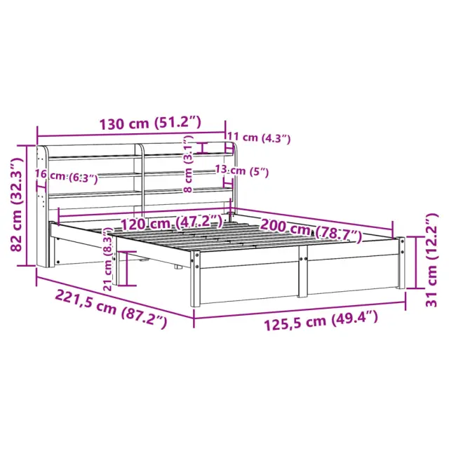 S tem lesenim posteljnim okvirjem lahko uživate v odličnem spancu! To je praktičen in dekorativen dodatek za vaše notranje prostore. Trdna borovina: Trdna borovina je čudovit naravni material. Borovina ima ravne vzorce, grče pa dajejo materialu njegov značilen, rustikalen videz.Močan posteljni okvir: Lesen okvir zagotavlja trdnost in stabilnost. Letvice iz vezanega lesa omogočajo dobro porazdelitev teže in zagotavljajo, da vzmetnica ostane na mestu ob vsakem zasuku in obračanju med spanjem.Vsestransko vzglavje: Ta posteljni okvir je opremljen z vzglavjem, ki zagotavlja odlično oporo hrbtu, ko sedite v postelji in berete ali gledate televizijo, hkrati pa služi tudi kot dekorativni element.Veliko prostora za shranjevanje: To elegantno vzglavje ima dve priročni polici, ki ponujata veliko prostora za shranjevanje, da bodo vaše večerne potrebščine na dosegu roke. Dobro je vedeti:Vzmetnica ni priložena tej postelji. Ponujamo različno izbiro ležišč. V naši trgovini si lahko ogledate ustrezne vzmetnice.Barva: BelaMaterial posteljnega okvirja: Trdna borovinaMaterial letvic: Vezan lesCelotne dimenzije: 221,5 x 130 x 82 cm (D x Š x V)Velikost primerne vzmetnice: 120 x 200 cm (Š x D) (vzmetnica ni priložena)Dimenzije vzglavja: 130 x 16 x 82 cm (D x Š x V)S policami za shranjevanjePotrebno sestavljanje: DaPaket vsebuje:1 x Posteljni okvir1 x Vzglavje 3306735
