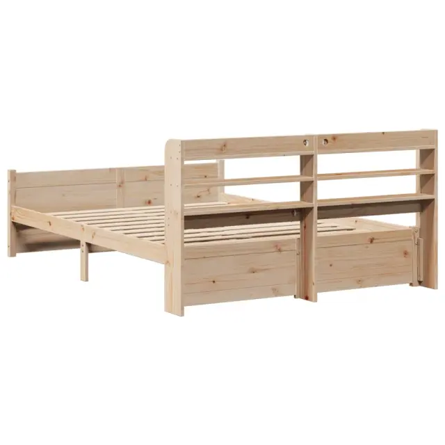 S tem lesenim posteljnim okvirjem lahko uživate v odličnem spancu! To je praktičen in dekorativen dodatek za vaše notranje prostore. Trdna borovina: Trdna borovina je čudovit naravni material. Borovina ima ravne vzorce, grče pa dajejo materialu njegov značilen, rustikalen videz.Močan posteljni okvir: Lesen okvir zagotavlja trdnost in stabilnost. Letvice iz vezanega lesa omogočajo dobro porazdelitev teže in zagotavljajo, da vzmetnica ostane na mestu ob vsakem zasuku in obračanju med spanjem.Funkcionalno vzglavje in podnožje: Vzglavje in podnožje lesene postelje ohranjata ležišče na mestu. Poleg tega vzglavje zagotavlja odlično oporo hrbtu, ko sedite v postelji in berete ali gledate televizijo.Veliko prostora za shranjevanje: To elegantno vzglavje ima dve priročni polici, ki ponujata veliko prostora za shranjevanje, da bodo vaše večerne potrebščine na dosegu roke. Dobro je vedeti:Vzmetnica ni priložena tej postelji. Ponujamo različno izbiro ležišč. V naši trgovini si lahko ogledate ustrezne vzmetnice.Material posteljnega okvirja: Trdna borovina (neobdelana)Material letvic: Vezan lesCelotne dimenzije: 208 x 150 x 82 cm (D x Š x V)Velikost primerne vzmetnice: 140 x 190 cm (Š x D) (vzmetnica ni priložena)Dimenzije vzglavja: 150 x 16 x 82 cm (D x Š x V)S policami za shranjevanjePotrebno sestavljanje: DaPaket vsebuje:1 x Posteljni okvir z vznožjem1 x Vzglavje 3306754