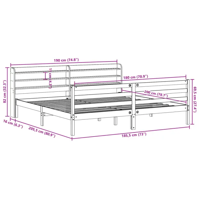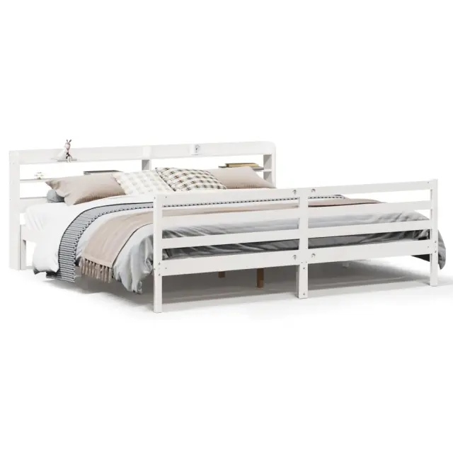 S tem lesenim posteljnim okvirjem lahko uživate v odličnem spancu! To je praktičen in dekorativen dodatek za vaše notranje prostore. Trdna borovina: Trdna borovina je čudovit naravni material. Borovina ima ravne vzorce, grče pa dajejo materialu njegov značilen, rustikalen videz.Praktične letvice: Letvice zagotavljajo dobro porazdelitev teže, kar ležišču zagotavlja prepotrebno oporo in zračnost.Veliko prostora za shranjevanje: To elegantno posteljno vzglavje ima dve priročni polici, ki ponujata veliko prostora za shranjevanje, da bodo vaše večerne potrebščine na dosegu roke.Samostoječe vzglavje: Samostoječe vzglavje ponuja brezskrbno rešitev za enostavno postavitev in premikanje brez potrebe po vgradnji na steno. Dobro je vedeti: Vzmetnica ni priložena tej postelji. Ponujamo različno izbiro ležišč. V naši trgovini si lahko ogledate ustrezne vzmetnice.Barva: BelaMaterial: Trdna borovinaCelotne dimenzije: 221,5 x 190 x 82 cm (D x Š x V)Višina prostora pod posteljo: 21 cmVelikost primerne vzmetnice: 180 x 200 cm (Š x D) (vzmetnica ni priložena)S policami za shranjevanjePotrebno sestavljanje: Da 3306652