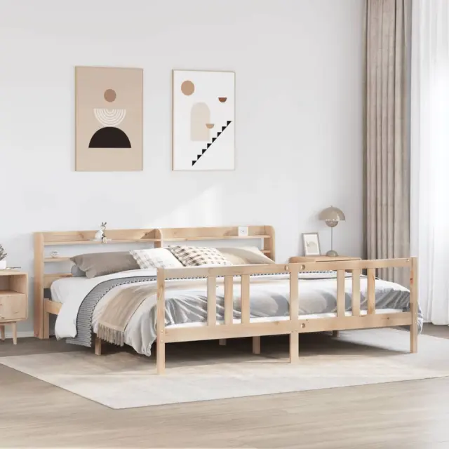 S tem lesenim posteljnim okvirjem lahko uživate v odličnem spancu! To je praktičen in dekorativen dodatek za vaše notranje prostore. Trdna borovina: Trdna borovina je čudovit naravni material. Borovina ima ravne vzorce, grče pa dajejo materialu njegov značilen, rustikalen videz.Močan posteljni okvir: Lesen okvir zagotavlja trdnost in stabilnost. Letvice iz vezanega lesa omogočajo dobro porazdelitev teže in zagotavljajo, da vzmetnica ostane na mestu ob vsakem zasuku in obračanju med spanjem.Funkcionalno vzglavje in podnožje: Vzglavje in podnožje lesene postelje ohranjata ležišče na mestu. Poleg tega vzglavje zagotavlja odlično oporo hrbtu, ko sedite v postelji in berete ali gledate televizijo.Veliko prostora za shranjevanje: To elegantno vzglavje ima dve priročni polici, ki ponujata veliko prostora za shranjevanje, da bodo vaše večerne potrebščine na dosegu roke. Dobro je vedeti:Vzmetnica ni priložena tej postelji. Ponujamo različno izbiro ležišč. V naši trgovini si lahko ogledate ustrezne vzmetnice.Material posteljnega okvirja: Trdna borovina (neobdelana)Material letvic: Vezan lesCelotne dimenzije: 218 x 210 x 82 cm (D x Š x V)Velikost primerne vzmetnice: 200 x 200 cm (Š x D) (vzmetnica ni priložena)Dimenzije vzglavja: 210 x 16 x 82 cm (D x Š x V)S policami za shranjevanjePotrebno sestavljanje: DaPaket vsebuje:1 x Posteljni okvir z vznožjem1 x Vzglavje 3306718