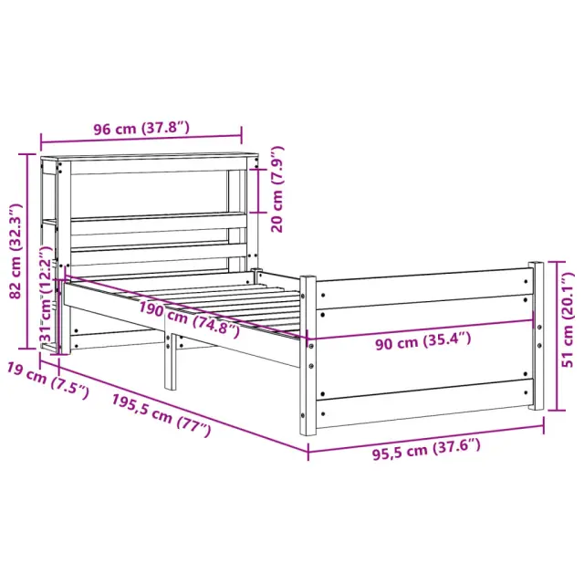 S tem lesenim posteljnim okvirjem lahko uživate v odličnem spancu! To je praktičen in dekorativen dodatek za vaše notranje prostore. Trdna borovina: Trdna borovina je čudovit naravni material. Borovina ima ravne vzorce, grče pa dajejo materialu njegov značilen, rustikalen videz.Močan posteljni okvir: Lesen okvir zagotavlja trdnost in stabilnost. Letvice iz vezanega lesa omogočajo dobro porazdelitev teže in zagotavljajo, da vzmetnica ostane na mestu ob vsakem zasuku in obračanju med spanjem.Funkcionalno vzglavje in podnožje: Vzglavje in podnožje lesene postelje ohranjata ležišče na mestu. Poleg tega vzglavje zagotavlja odlično oporo hrbtu, ko sedite v postelji in berete ali gledate televizijo.Veliko prostora za shranjevanje: To elegantno vzglavje ima dve priročni polici, ki ponujata veliko prostora za shranjevanje, da bodo vaše večerne potrebščine na dosegu roke. Dobro je vedeti:Vzmetnica ni priložena tej postelji. Ponujamo različno izbiro ležišč. V naši trgovini si lahko ogledate ustrezne vzmetnice.Material posteljnega okvirja: Trdna borovina (neobdelana)Material letvic: Vezan lesCelotne dimenzije: 214,5 x 96 x 82 cm (D x Š x V)Velikost primerne vzmetnice: 90 x 190 cm (Š x D) (vzmetnica ni priložena)Dimenzije vzglavja: 96 x 19 x 82 cm (D x Š x V)S policami za shranjevanjePotrebno sestavljanje: DaPaket vsebuje:1 x Posteljni okvir z vznožjem1 x Vzglavje 3306007