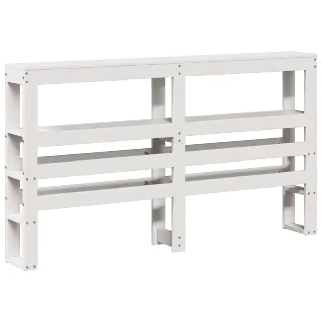 Zagotovite si boljši spanec s tem posteljnim okvirjem! Je prijeten dodatek za vsako spalnico. Stabilen in dolgotrajen okvir: Trdna borovina je znana po svoji trdnosti in trajnosti. Ravni vzorci in značilni vozli prispevajo k njenemu rustikalnemu čaru.Podnožje z letvami za optimalno podporo: Za podporo in zračnost ležišča je posteljni okvir opremljen z letvenim dnom.Veliko prostora za shranjevanje: To elegantno posteljno vzglavje ima dve priročni polici, ki ponujata veliko prostora za shranjevanje, da bodo vaše večerne potrebščine na dosegu roke.Samostoječe vzglavje: Samostoječe vzglavje ponuja brezskrbno rešitev za enostavno postavitev in premikanje brez potrebe po vgradnji na steno. Dobro je vedeti:Vzmetnica ni priložena tej postelji. Ponujamo različno izbiro ležišč. V naši trgovini si lahko ogledate ustrezne vzmetnice.Barva: BelaMaterial: Trdna borovinaMaterial letvic: Vezan lesCelotne dimenzije: 215,5 x 126,5 x 82 cm (D x Š x V)Velikost primerne vzmetnice: 120 x 190 cm (Š x D) (vzmetnica ni priložena)S policami za shranjevanjePotrebno sestavljanje: Da Paket vsebuje:1 x Posteljni okvir1 x Vzglavje 3306361