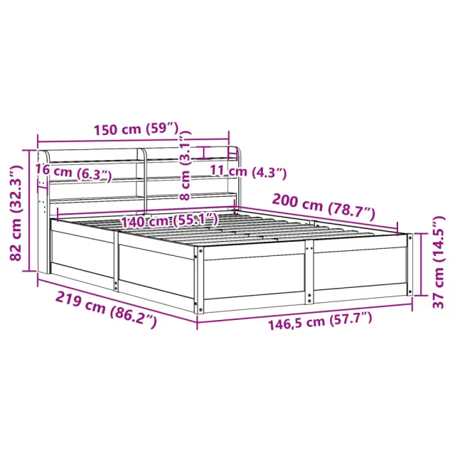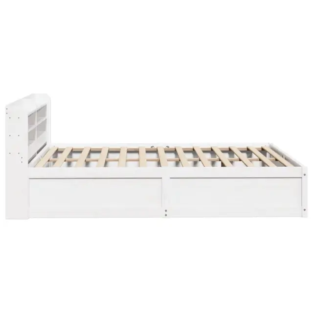 Zagotovite si boljši spanec s tem posteljnim okvirjem! Je prijeten dodatek za vsako spalnico. Stabilen in dolgotrajen okvir: Trdna borovina je znana po svoji trdnosti in trajnosti. Ravni vzorci in značilni vozli prispevajo k njenemu rustikalnemu čaru.Podnožje z letvami za optimalno podporo: Za podporo in zračnost ležišča je posteljni okvir opremljen z letvenim dnom.Veliko prostora za shranjevanje: To elegantno posteljno vzglavje ima tri priročne police, ki ponujajo veliko prostora za shranjevanje, da bodo vaše večerne potrebščine na dosegu roke.Samostoječe vzglavje: Samostoječe vzglavje ponuja brezskrbno rešitev za enostavno postavitev in premikanje brez potrebe po vgradnji na steno. Dobro je vedeti:Vzmetnica ni priložena tej postelji. Ponujamo različno izbiro ležišč. V naši trgovini si lahko ogledate ustrezne vzmetnice.Barva: BelaMaterial: Trdna borovinaMaterial letvic: Vezan lesCelotne dimenzije: 219 x 150 x 82 cm (D x Š x V)Velikost primerne vzmetnice: 140 x 200 cm (Š x D) (vzmetnica ni priložena)S policami za shranjevanjePotrebno sestavljanje: Da Paket vsebuje:1 x Posteljni okvir1 x Vzglavje 3307084