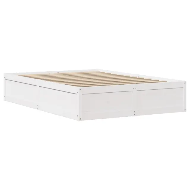 vidaXL Posteljni okvir z vzglavjem bel 140x200 cm trdna borovina