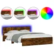vidaXL Posteljni okvir z vzglavjem in LED dimljen hrast 150x200 cm