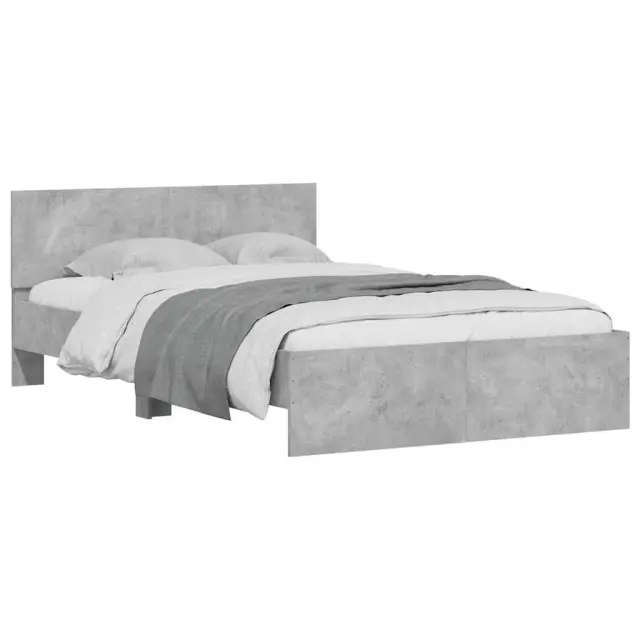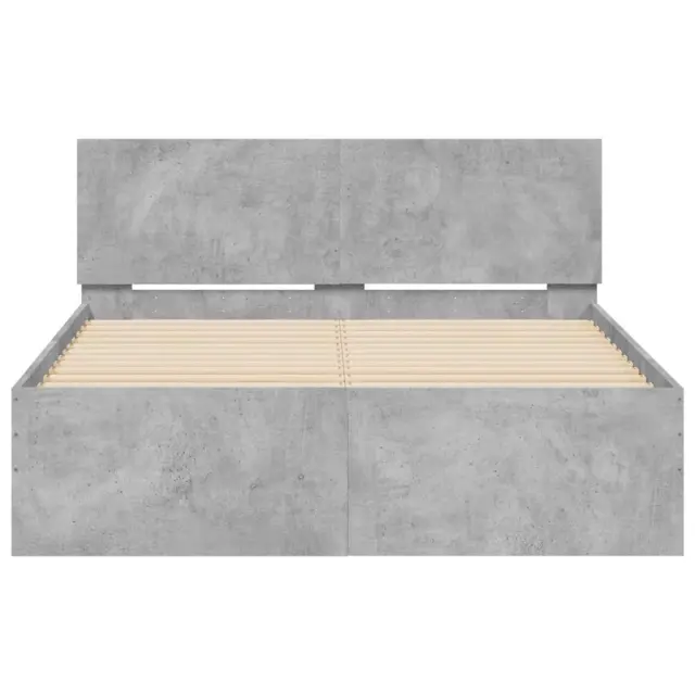 vidaXL Posteljni okvir z vzglavjem in LED betonsko siv 135x190 cm