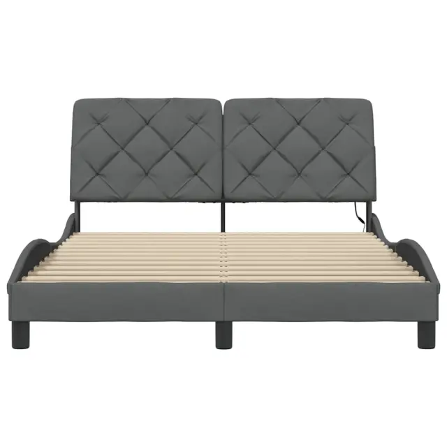 Zagotovite si boljši spanec s tem posteljnim okvirjem z LED lučkami! Je prijeten dodatek za vsako spalnico. Mehak in trpežen material: Tkanina iz poliestra ponuja kombinacijo mehkobe, zračnosti in trpežnosti ter vam zagotavlja popolno udobje in prijetnost.Letvice za optimalno podporo: Ta posteljni okvir je opremljen z letvicami, ki zagotavljajo osnovno podporo in zračnost vašega ležišča.Vsestransko vzglavje: Ta posteljni okvir je opremljen z vzglavjem, ki zagotavlja odlično oporo hrbtu, ko sedite v postelji in berete ali gledate televizijo, hkrati pa služi tudi kot dekorativni element.LED osvetlitev za prijeten ambient: To posteljo odlikuje LED osvetlitev, ki jo je mogoče preprosto nastaviti in tako ustvariti posebno svetlobno predstavo. Prilagodite lahko načine, barve in svetlost ter tako izboljšate vzdušje v notranjem prostoru.Valovita stranica: Valoviti videz posteljnega okvirja je eleganten in prefinjen. Dekorju v vašem domu dodaja sodoben in eleganten pridih ter tako postane osrednja točka spalnice. Dobro je vedeti:Vzmetnica ni priložena tej postelji. Ponujamo različno izbiro ležišč. V naši trgovini si lahko ogledate ustrezne vzmetnice.Izdelek ima priključek USB, ki zahteva certificiran vir napajanja 5 V USB (ni priložen).Posteljni okvir:Barva: Temno sivaMaterial: Tkanina (100 % poliester), kovina, vezan les, inženirski lesCelotne dimenzije: 218 x 125 x 74,5 cm (D x Š x V)Velikost primerne vzmetnice: 120 x 200 cm (Š x D) (vzmetnica ni priložena)Oblazinjeno vzglavje:Barva: Temno sivaMaterial: Blago (100 % poliester)Material polnila: PP vlaknaDimenzije: 122 x 6 x 48 cm (D x Š x V)LED trak:Dolžina: 55 cmNapetost: DC 5 VDolžina kabla USB : 150 cmDolžina električnega kabla: 30 cmIP ocena: IP65Paket vsebuje:1 x Posteljni okvir1 x Oblazinjeno vzglavje2 x LED trak 3310658