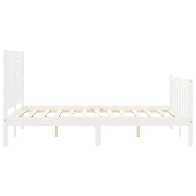 vidaXL Posteljni okvir z vzglavjem bel 140x200 cm trden les