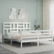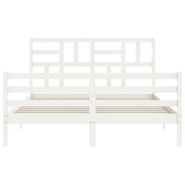 vidaXL Posteljni okvir z vzglavjem bel 160x200 cm trden les