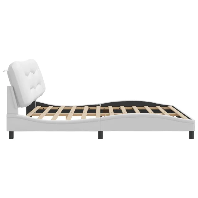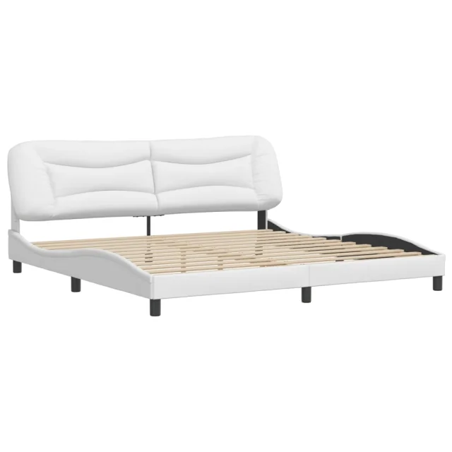 vidaXL Posteljni okvir z vzglavjem bel 200x200 cm umetno usnje
