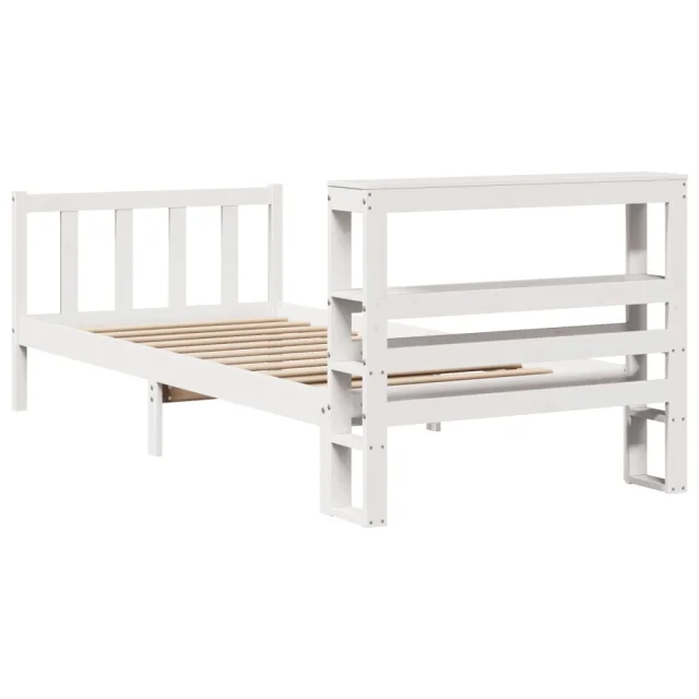 vidaXL Posteljni okvir z vzglavjem bel 90x190 cm trdna borovina