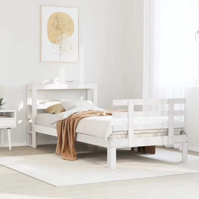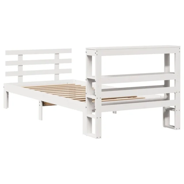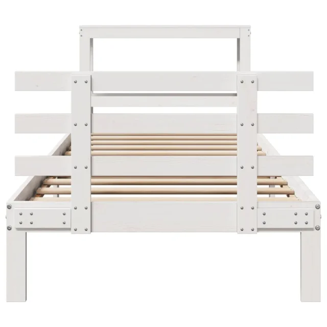 vidaXL Posteljni okvir z vzglavjem bel 90x200 cm trdna borovina