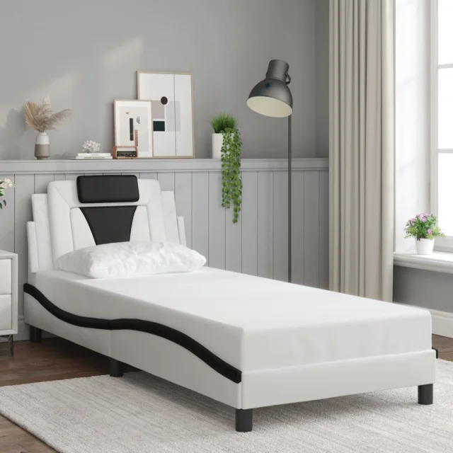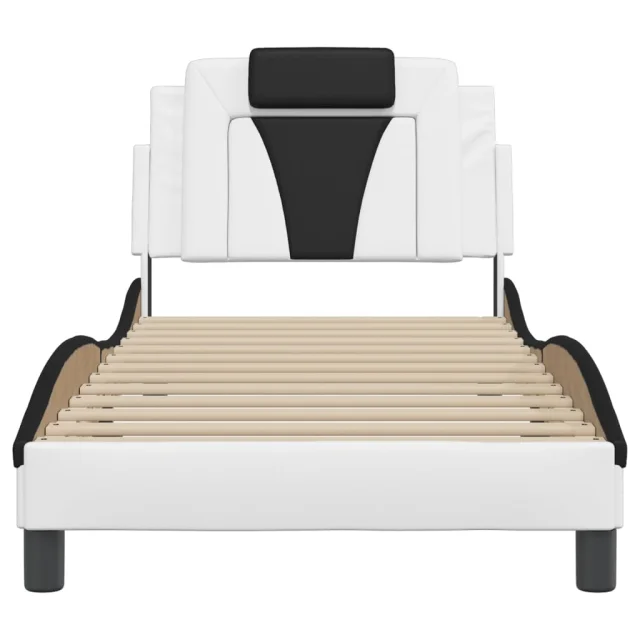 vidaXL Posteljni okvir z vzglavjem bel in črn 90x200 cm umetno usnje