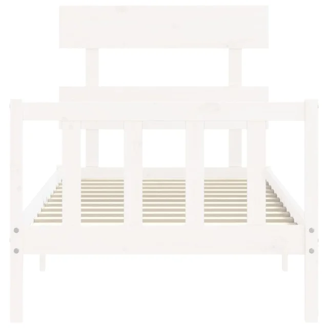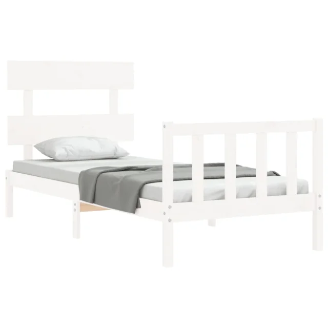 vidaXL Posteljni okvir z vzglavjem bel trden les